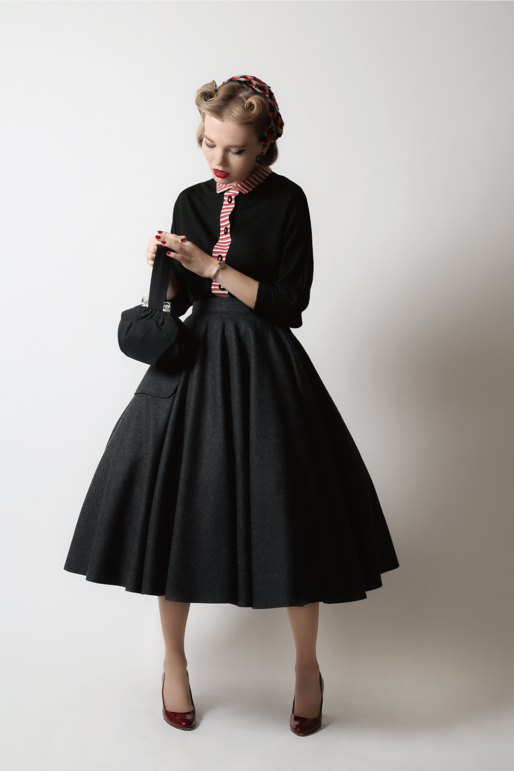 WOOLEN FELT CIRCULAR SKIRTSIZE <S><M> MATERIAL : WOOL 80% NYLON 20% OTHER 4% PRICE:28,000+TAX |